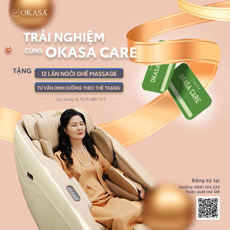 Okasa gửi tặng bạn chương trình trải nghiệm ghế massage miễn phí lên đến 12 buổi/1 tháng, mỗi lần trải nghiệm: 1h.