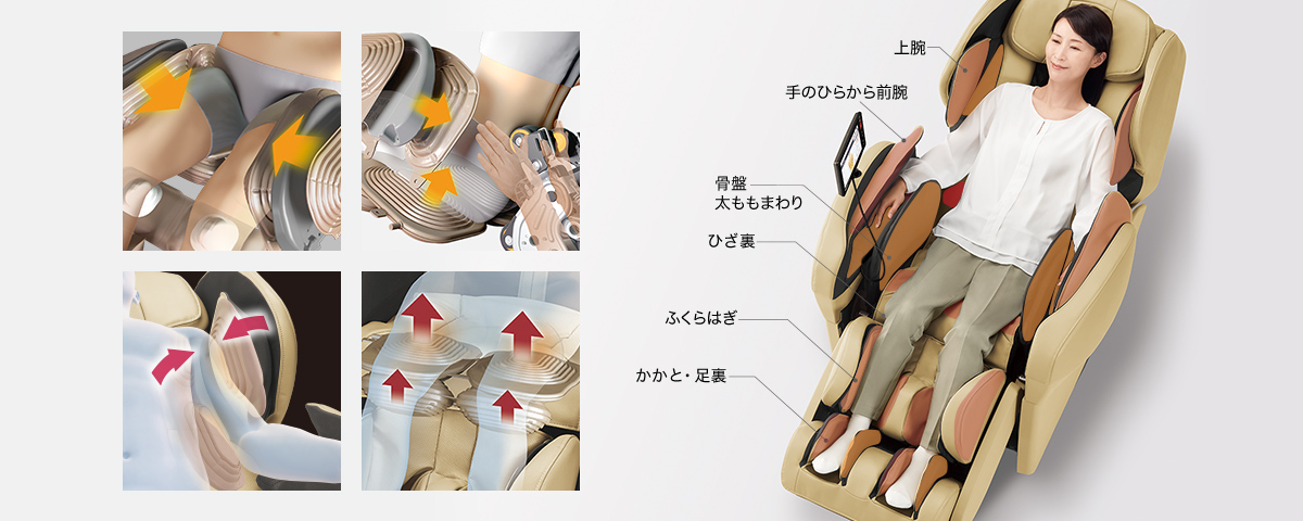 Bằng cách tạo ra 2000 tín hiệu mỗi giây và tự do điều khiển chuyển động của động cơ (lên / xuống, trái / phải, trước / sau) Panasonic tạo ra một loạt kỹ thuật điêu luyện. Ngoài ra, chuyển động bóng massage mượt mà đạt được bằng cách điều khiển phản hồi chuyển động của động cơ ở tốc độ cao.