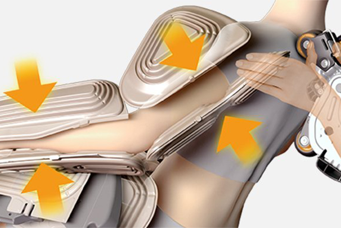 Được trang bị túi khí xung quanh ghế, các chuyển động khác nhau của túi khí như nắm, ấn và đẩy lên, giúp thả lỏng toàn bộ cơ thể một cách thoải mái.