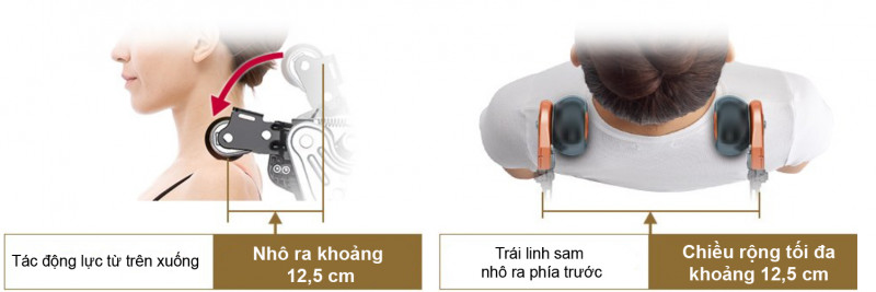 | Massage phần trên cơ thể | Phạm vi điều chỉnh hướng dọc | Khoảng 79 cm (khoảng cách di chuyển bóng linh sam khoảng 63 cm) |
